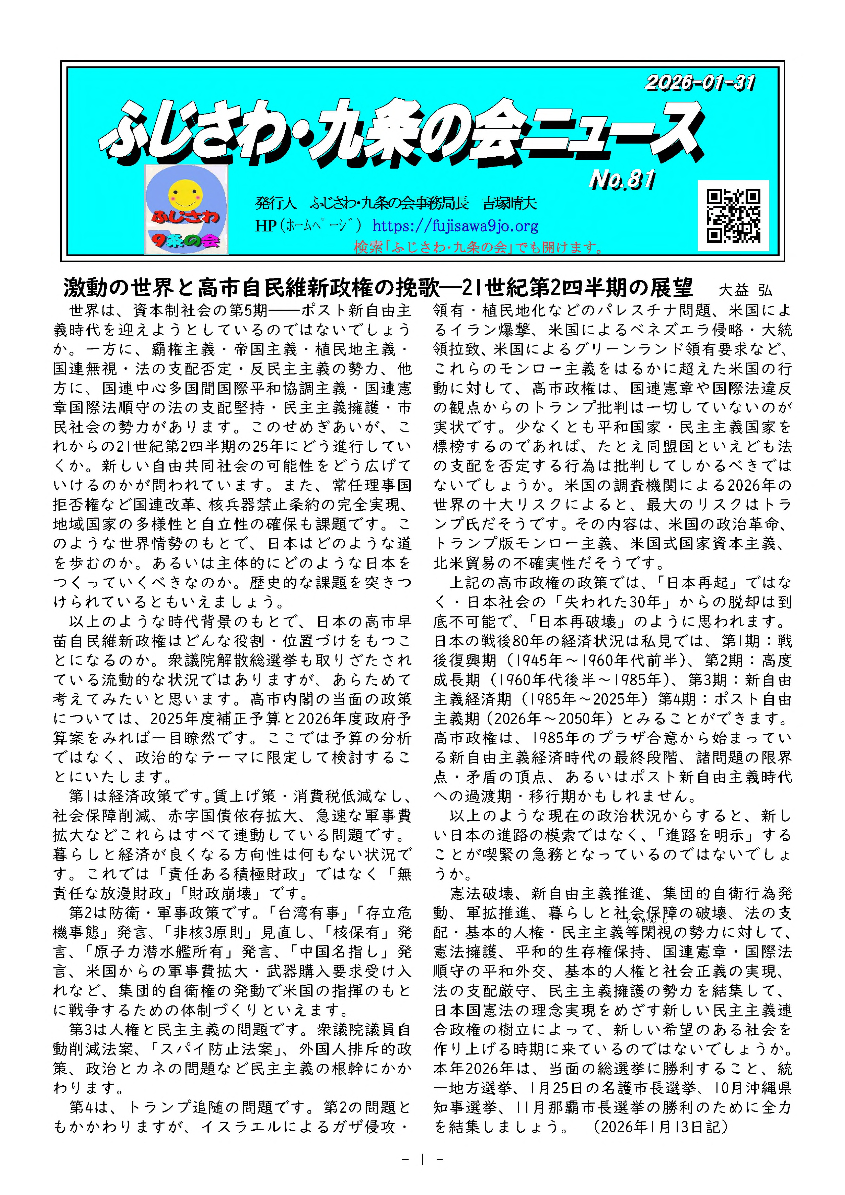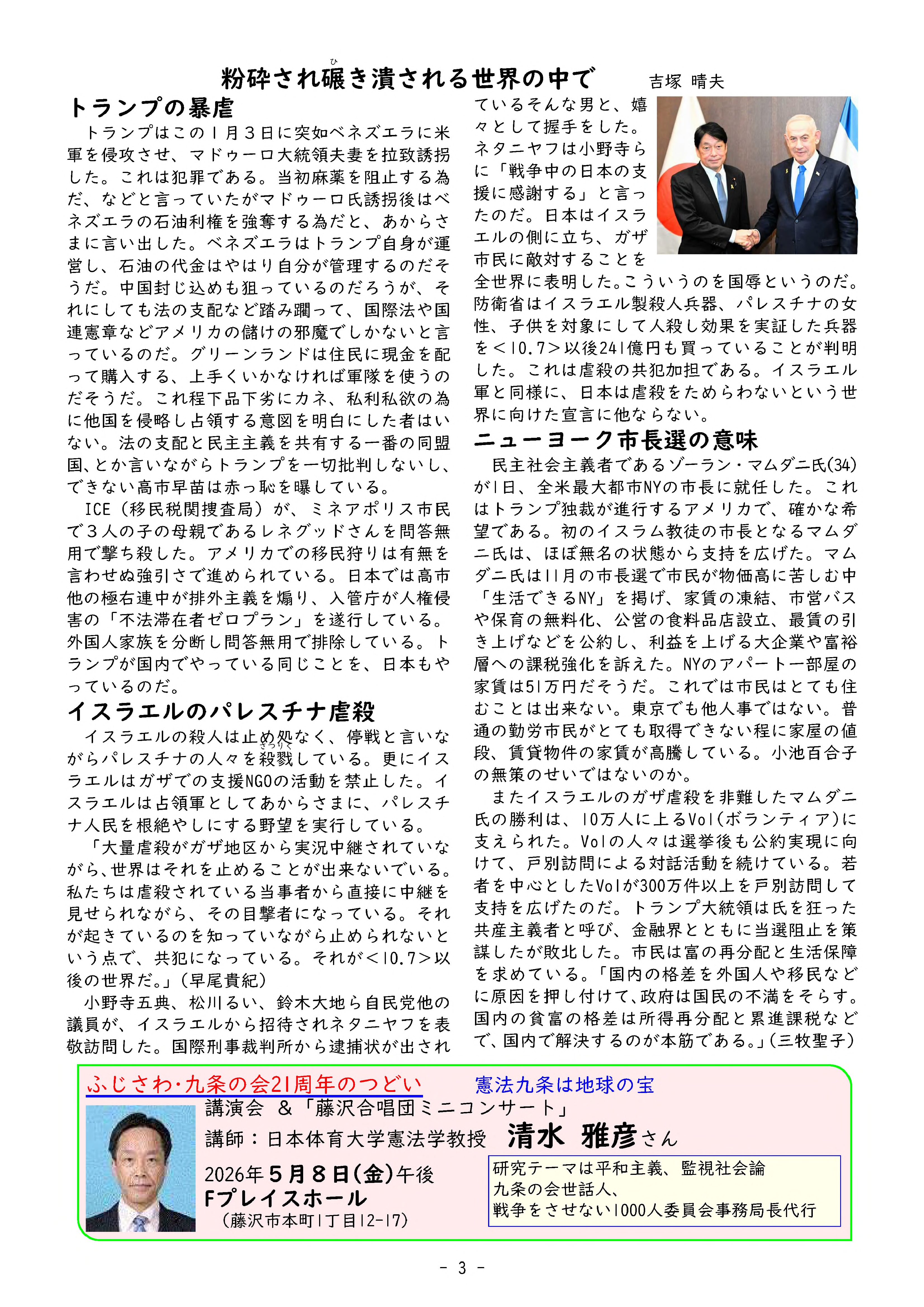 | 2026.01.31 | ふじさわ・九条の会ニュースNo.81(pdf表示)を掲載 ※2月の予定の下には画像で表示 | new |