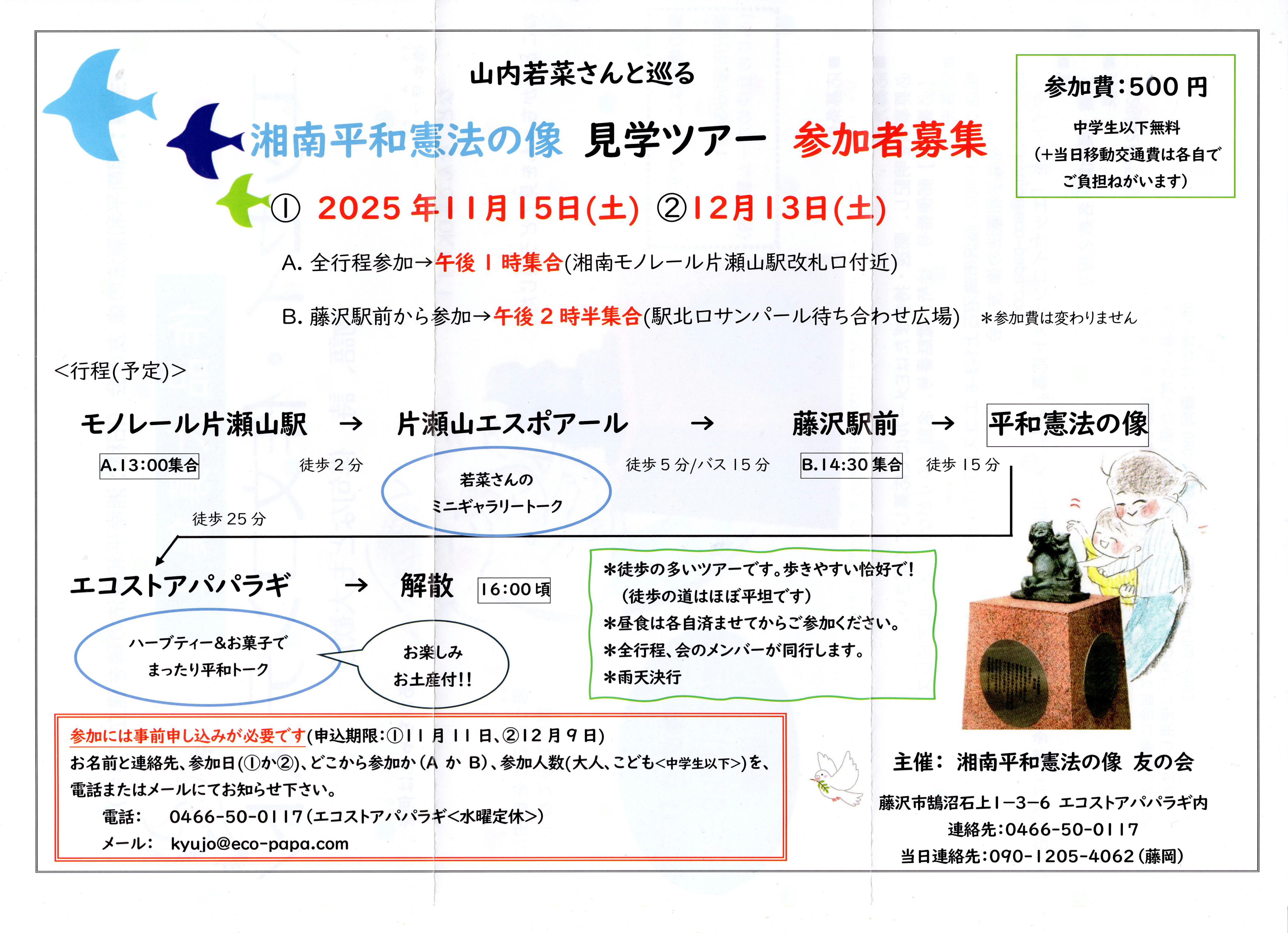 | 湘南平和憲法の像見学ツアー参加者募集 ①2025年11月15日(土)②12月13日(土) |